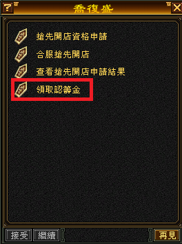 ★點擊(合服搶先開店資格申請),點擊(領取認籌金)->將會獲得對應的認籌金