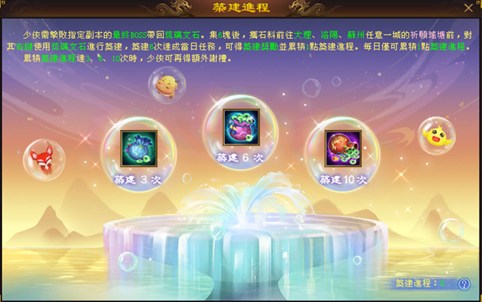 | 累積築建3次可獲得清漓白玉禮匣1個 | 鹿蜀魂玉5個 |