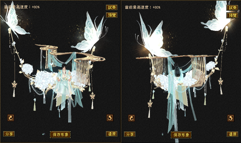 品項二:元寶商城上架【30天坐騎-玉蝶乘绡】(價格以遊戲內顯示為主)