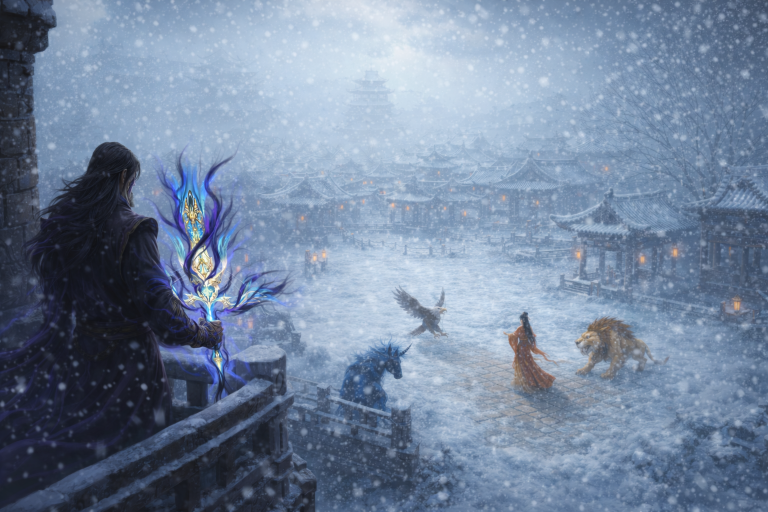 蔽日奪暖,召暴風雪層層冰封天龍山河