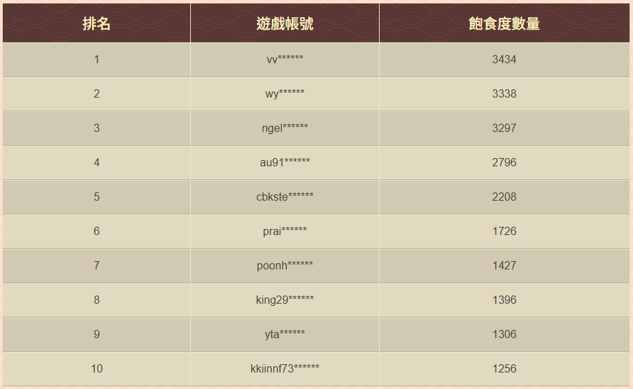 | 餵餵小餓人飽食度第16名-宗師版MYCARD專屬3000點1個 | s9******** |