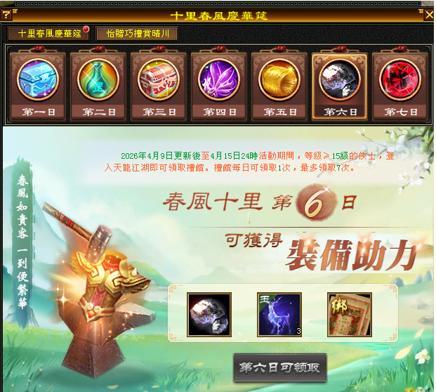 2.活動期間,(角色每日需登出遊戲後,在登入遊戲內)方可進行對應獎勵領取