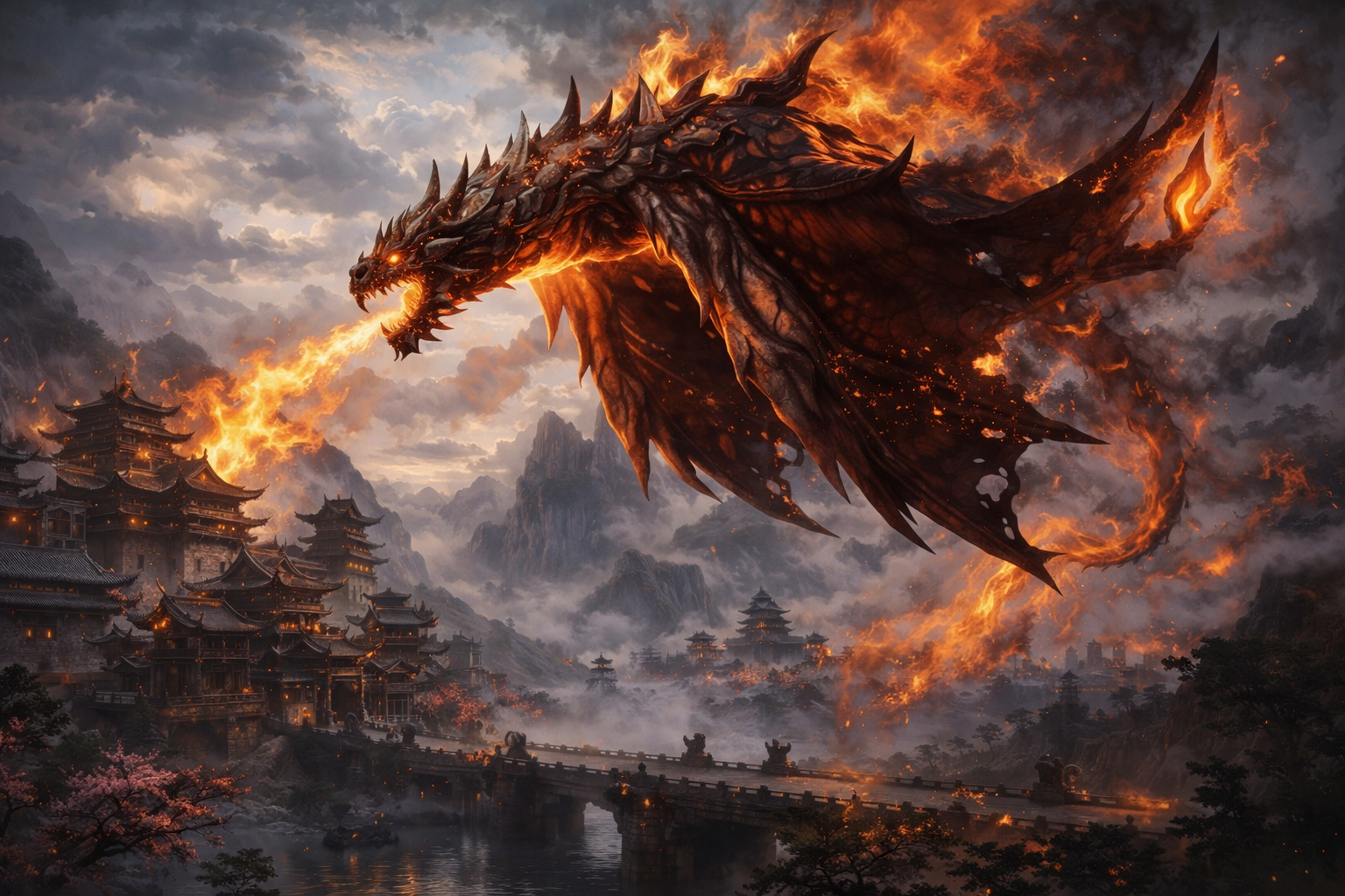 絕雲焱龍起,赤霄裂長空,炎息吞萬里,雷鳴動蒼穹