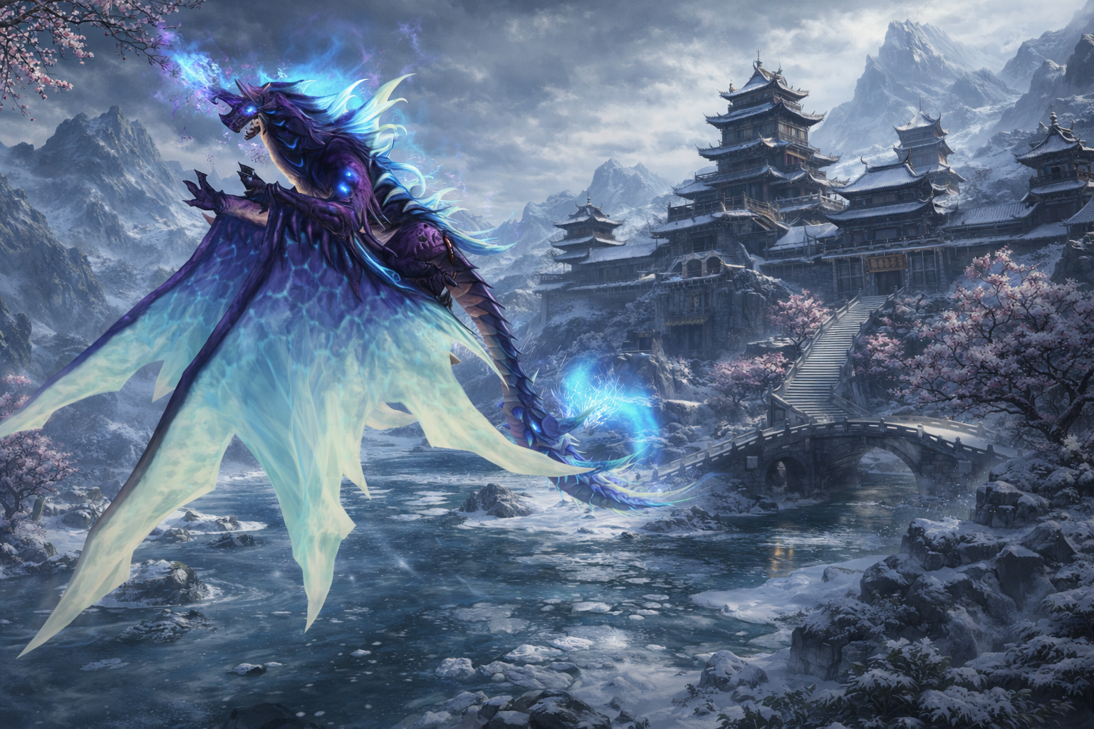蒼穹裂羽光,龍影壓山河,九霄翻電翼,萬里鎮風波